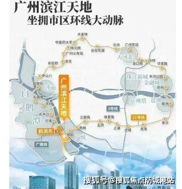 :项目门口即地铁 11 号线鹤洞东站,直线 米,规划中的佛山地铁 11 号线也在项目南侧设站。通过 11 号线这一广州首条环线,可快速连接珠金琶 CBD,还能前往大湾区艺术中心感受艺术氛围,或到老西关永庆坊体验百年烟火气。此外,3 站可接驳 22 号线(在建中),未来南延段直通深圳。售楼处电线